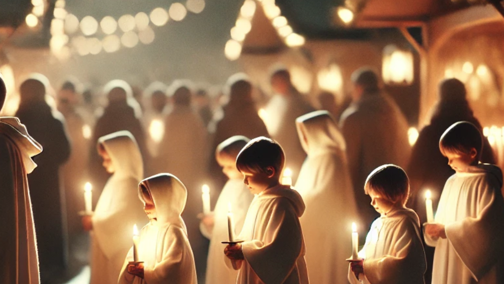 12月13日に行われる「光の祭り」で、子どもや合唱団が白い衣装とろうそくを持って歌いながら進む姿が特徴的です。